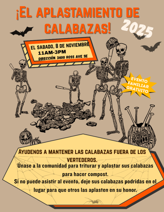 Keep pumpkins out of landfills! Join the community for this fun FREE event… Smash and mash those rotting Halloween pumpkins to be used for compost.